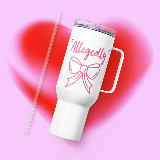 "Allegedly" a 25 oz Travel Mug with a Bow